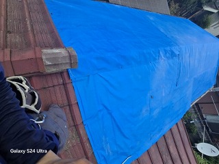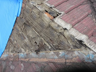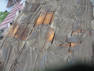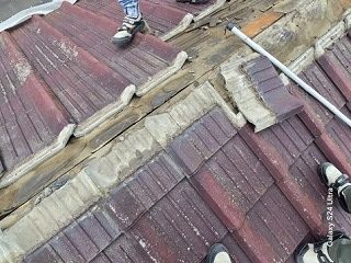 四国中央市で築40年のセメント瓦屋根を板金屋根へ葺き替え工事開始。既存瓦の撤去。