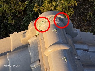 たまたま屋根を見た他の業者の方から漆喰のヒビを心配され、点検してほしいとご連絡をいただきました。ご自身では確認できない場所だけに、どれほど傷んでいるのか気になってしまったとのことでした。屋根全体の状態も合わせて見てほしいとのご依頼をいただき、早速現地調査へ伺いました。